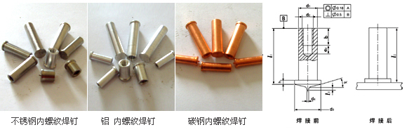 儲能內(nèi)螺紋焊釘有:碳鋼,不銹鋼,鋁 (單位:mm)